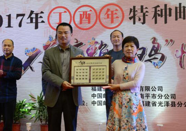 揭幕仪式由光泽县人民政府、圣农携手中国邮政集团公司光泽县分公司联合主办,常务副总裁陈榕为首日封揭幕,并在首发式上讲了话,她说邮票被誉为国家名片,是特殊的文化传播媒介,而生肖是产生于我国的一种古老民俗文化现象。鸡在中国十二生肖中排名第十,代表着诚信,象征着吉祥。特种邮票的发行,将有利于树立圣农企业新形象,促进企业文化建设的提升,打造出企业对外交流的新载体。