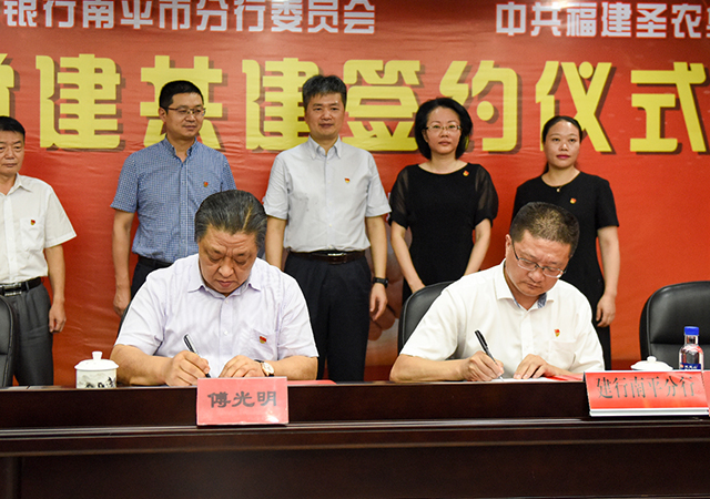 导读:7月18日,圣农集团党委与建行南平分行党委党建共建签约仪式暨精准扶贫座谈会在圣农集团总部召开。双方签订《党建共建协议》,互授党建共建单位牌匾。