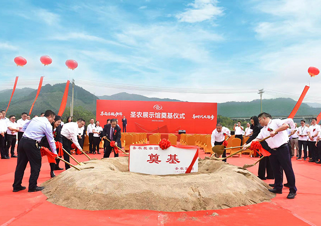传承创新,共筑新时代。4月20日上午10:00,值周年庆典之际,圣农展示馆奠基仪式在光泽县鸾凤乡中坊村同期举行。圣农发展傅光明董事长、圣农集团傅芬芳董事长、光泽县委书记陈中民、县政府县长王贵、县人大常委会主任刘雄、县政协主席陈高宏以及其他县委县政府领导、圣农集团高管共同参加奠基仪式。