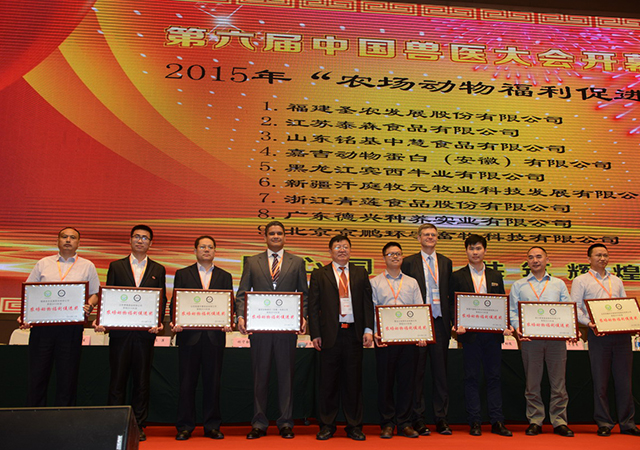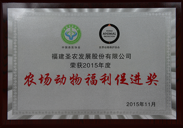 11月8日,由中国兽医协会主办的第六届中国兽医大会在福州海峡国际会展中心隆重开幕。会上,圣农被授予“农场动物福利促进奖”,并受邀参与国家技术标准《畜禽养殖和屠宰环节福利标准及评价要求——猪、肉鸡、蛋鸡、肉牛、奶牛、肉羊》的制定。在获奖的9家企业中,圣农是全国范围内,获此殊荣的国内白羽肉鸡养殖加工企业;在百胜和麦当劳供应商系统中,圣农获得该奖项并受邀参与动物福利国家技术标准制定的国内企业。